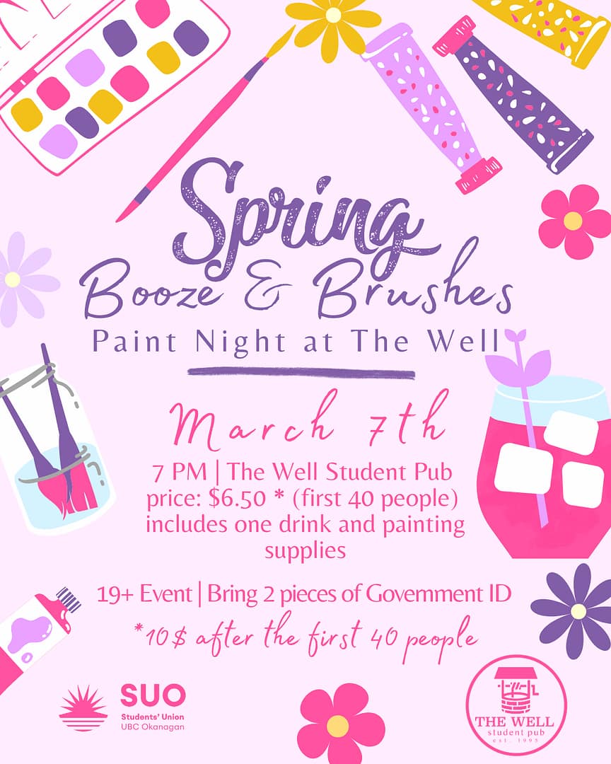 Join us at The Well for a spring-themed Booze & Brushes event! Celebrate the warmer days ahead with a fun, floral paint night.