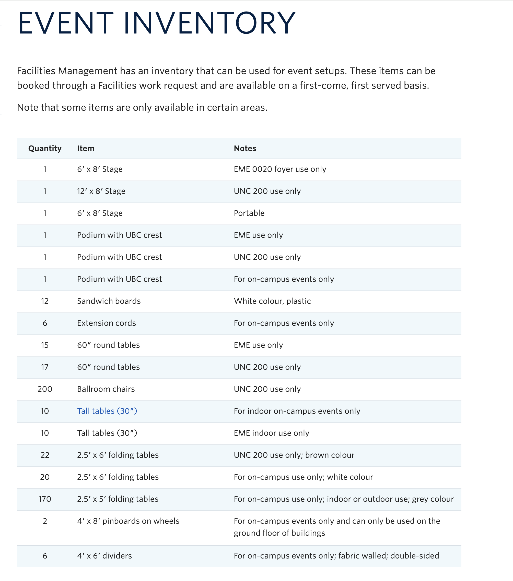 - Campus Event Set-up Work Order Form – to order event set up from the UBCO Facilities Department